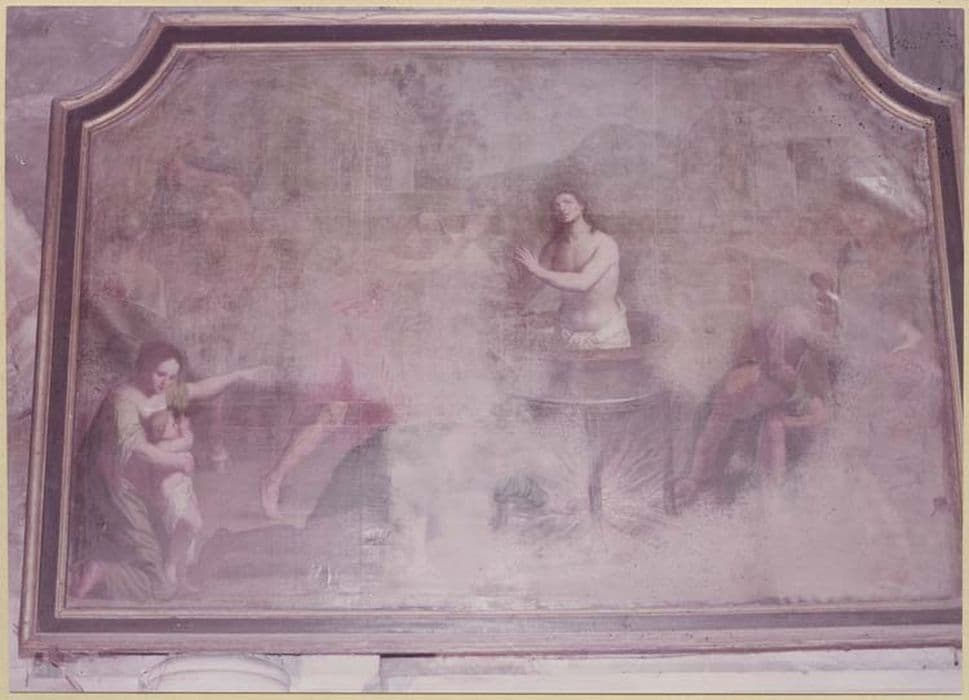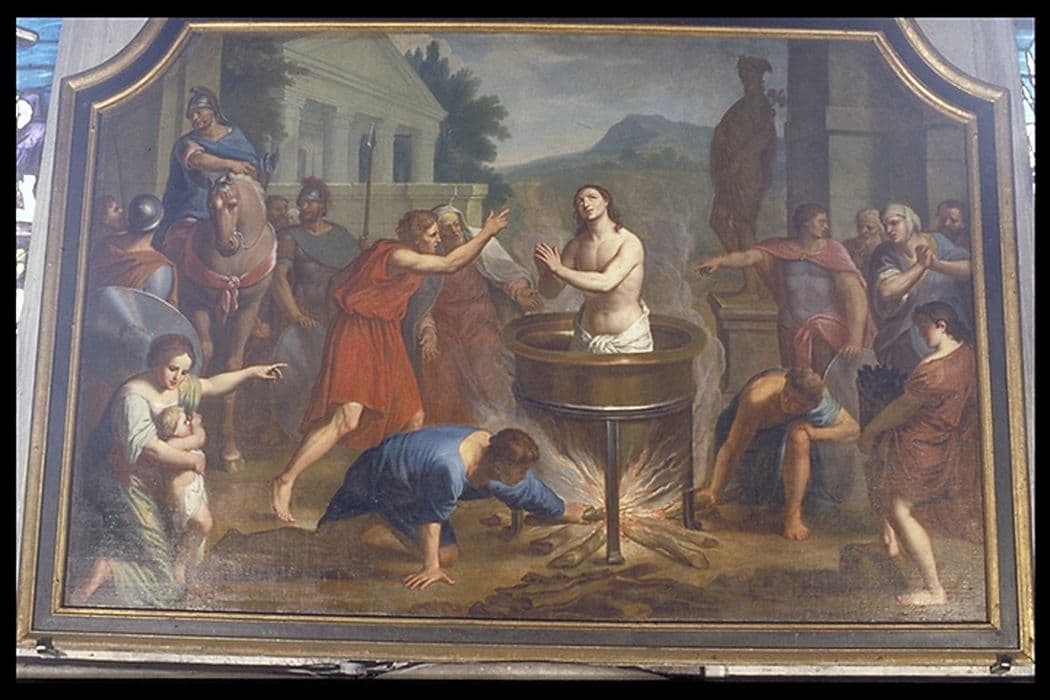 tableau : Saint Pantaléon plongé dans du plomb fondu, cadre