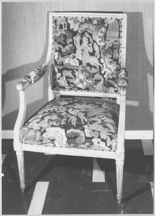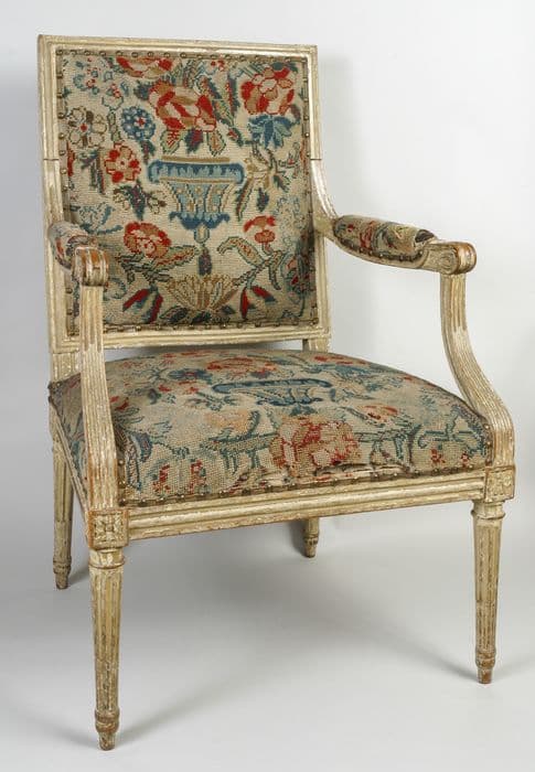 hêtre : peint ; tapisserie au point