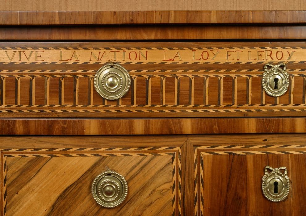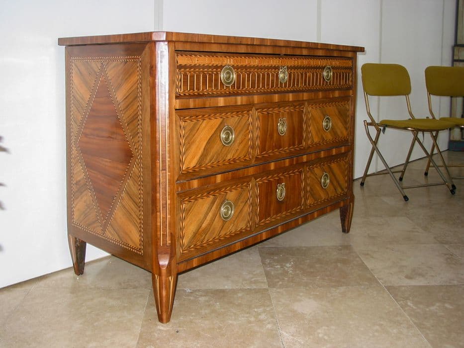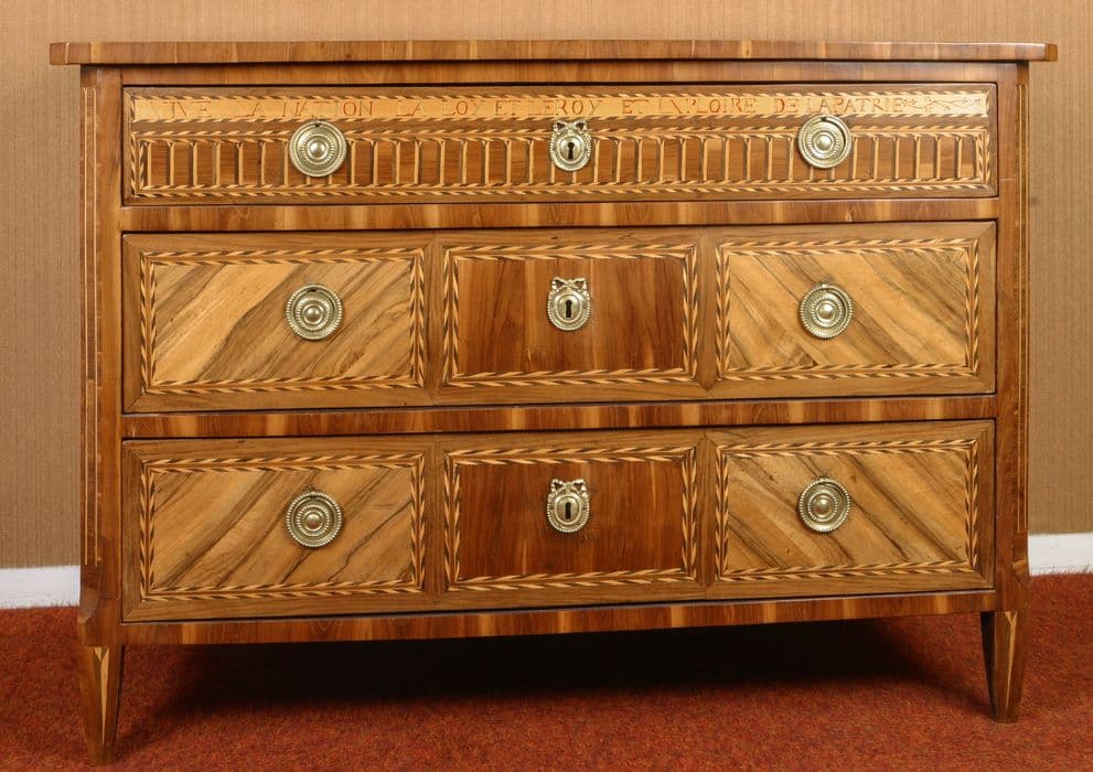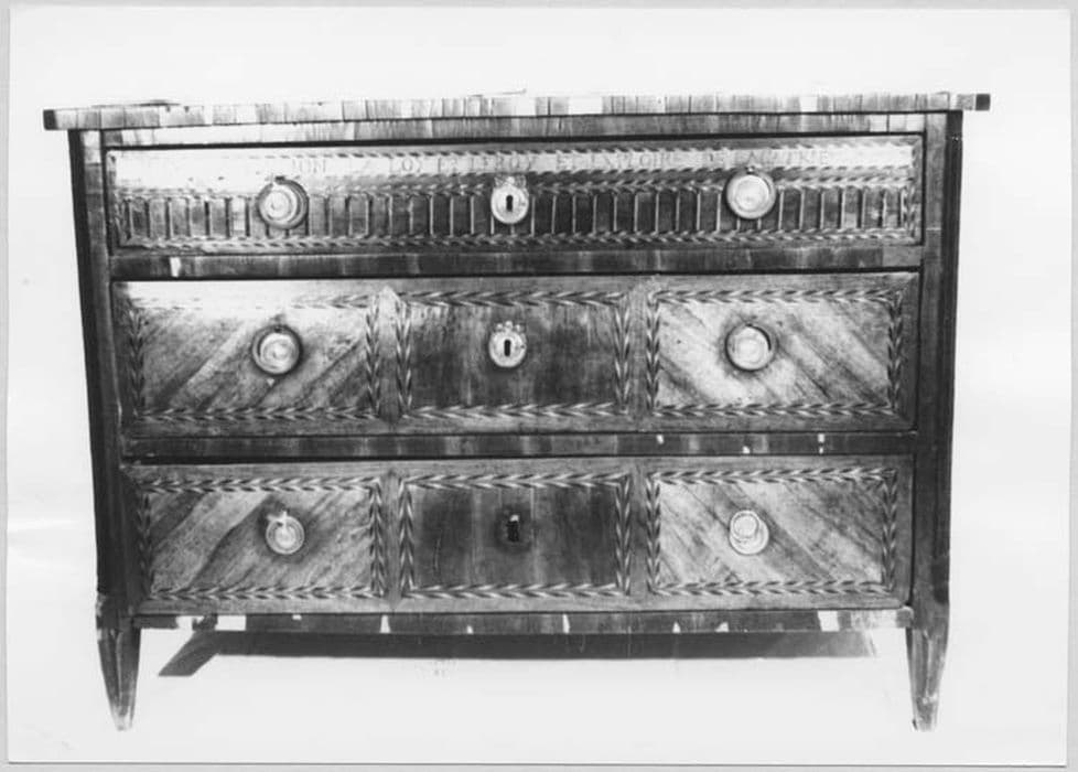 Commode composée de trois tiroirs avec garnitures en bronze.