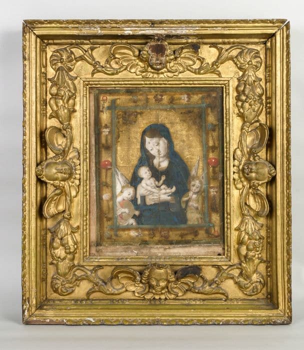 peinture sur soie et son cadre : Vierge à l'Enfant dite Notre-Dame des Vertus