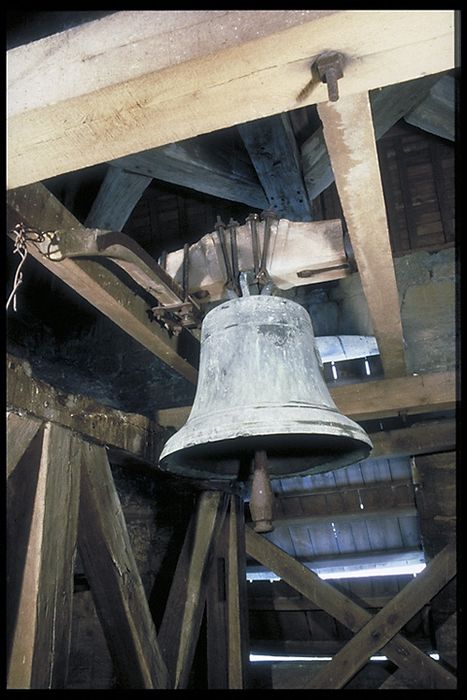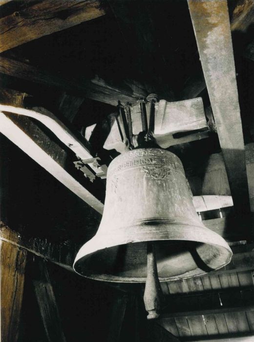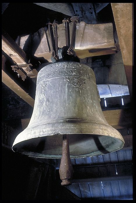 Cette cloche a conservé son mécanisme ancien (système à la volée). Le joug, les ferrures de fixation, le battant en fer et la traverse d'appel sont en bois. Sur la faussure sont des effigies de saints, saint Laurent et son gril, saint Pierre et saint Jean-Baptiste.