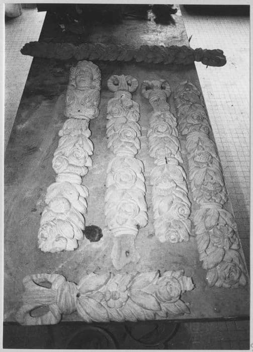 Ce décor du choeur est composé d'une travée droite suivie de l'abside à cinq pans et comprend 6 grands bas-reliefs mis en valeur par un important décor d'architecture avec emploi de l'ordre corinthien.
