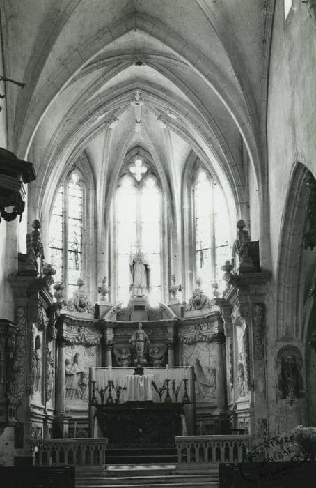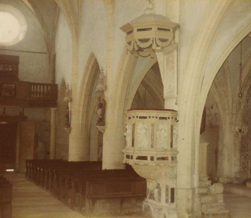 Elle comprend la cuve en pierre ornée de statuettes, à laquelle on accède par un escalier tournant dont le mur d'échiffre est sculpté d'un vaste bas-relief et supporte une rampe à balustre de bois. Formant fond en arrière de la cuve, contre le pilier, un panneau sculpté monte jusqu'à l'abat-voix surmonté d'un ange embouchant une trompette.