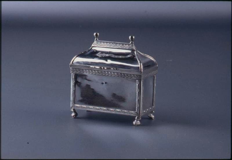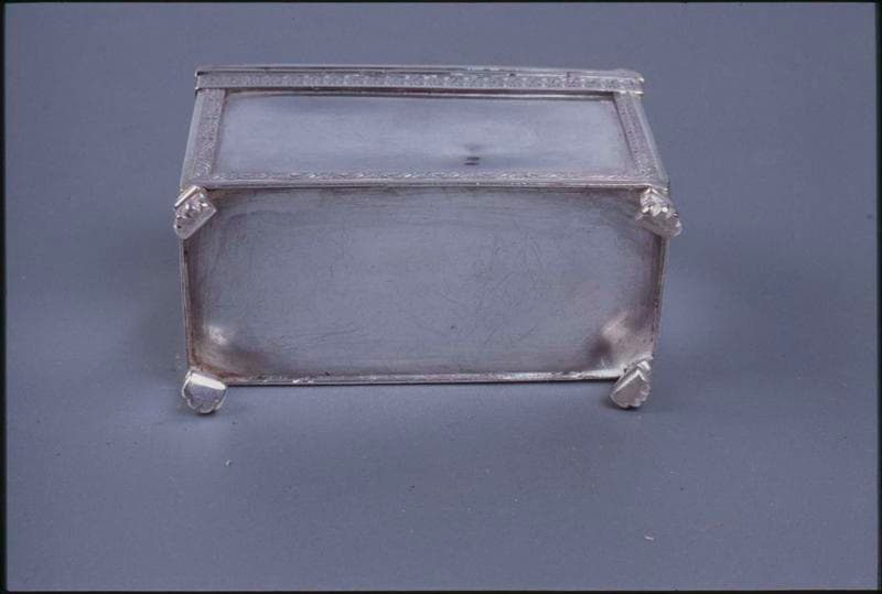 Boîte parallélipédique reposant sur quatre petites pattes animalières.