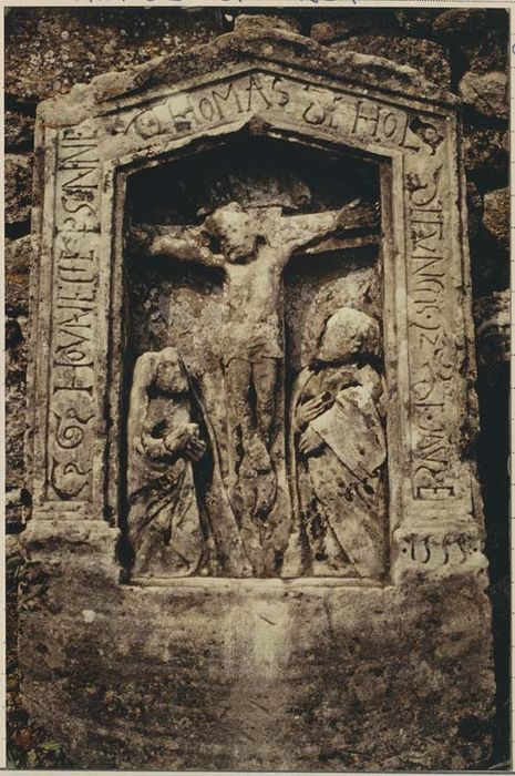Epitaphe (sur le cadre) : CI GI HOVNESTE P SONNE/THOMAS DE HOL (S) /DEFUNCTIS (?) 12 DE JAVIE 1555.