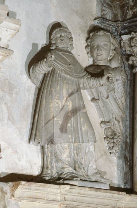 transept sud-sur l'amortissement de l'entablement du retable et à gauche sur une porte murée (évêque)