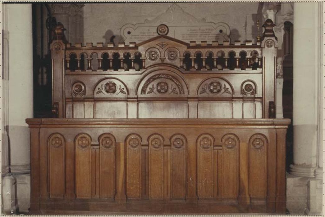 Il existe pour ces bancs d'honneur, destinés aux membres du conseil municipal, les devis détaillés signés et datés de Vallin. Un fois encore, on constate la qualité de ce mobilier tant au niveau du matériau qu'au niveau de la sculpture et de la finition. Ces meubles sont encore dans le style médiéval. Ils sont les derniers de la première période de l'artiste. Dès 1894, Eugène Vallin se tourne vers l'Art nouveau, les commandes religieuses déclinant.