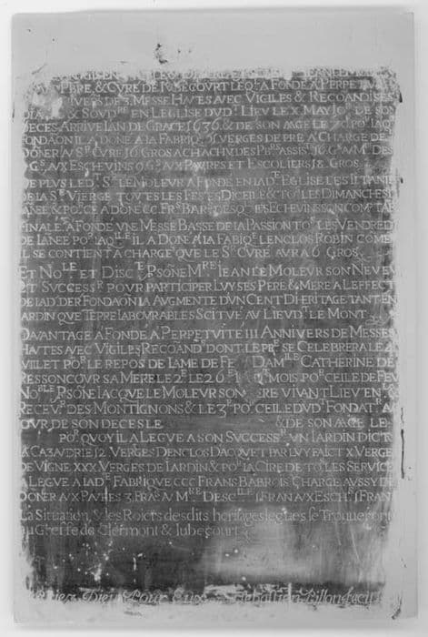 plaque funéraire en mémoire de Jean Le Moleur, curé de Jubécourt