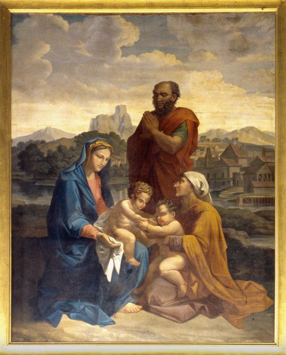 tableau : Rencontre de Jésus avec Saint Jean Baptiste en compagnie de la Vierge, Sainte Elisabeth et Zacharie