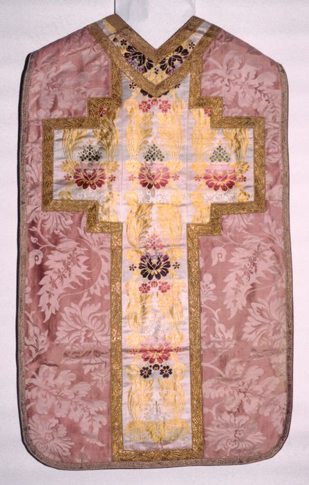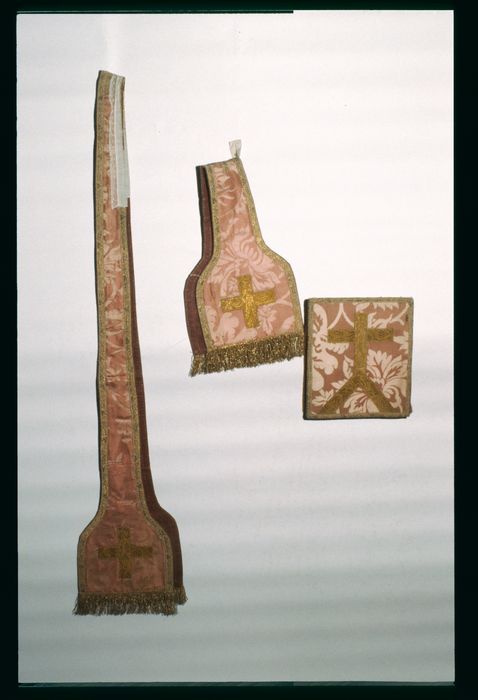 POP | Plateforme ouverte du patrimoineornement liturgique rose comprenant une chasuble, une étole, un manipule et un voile de calice