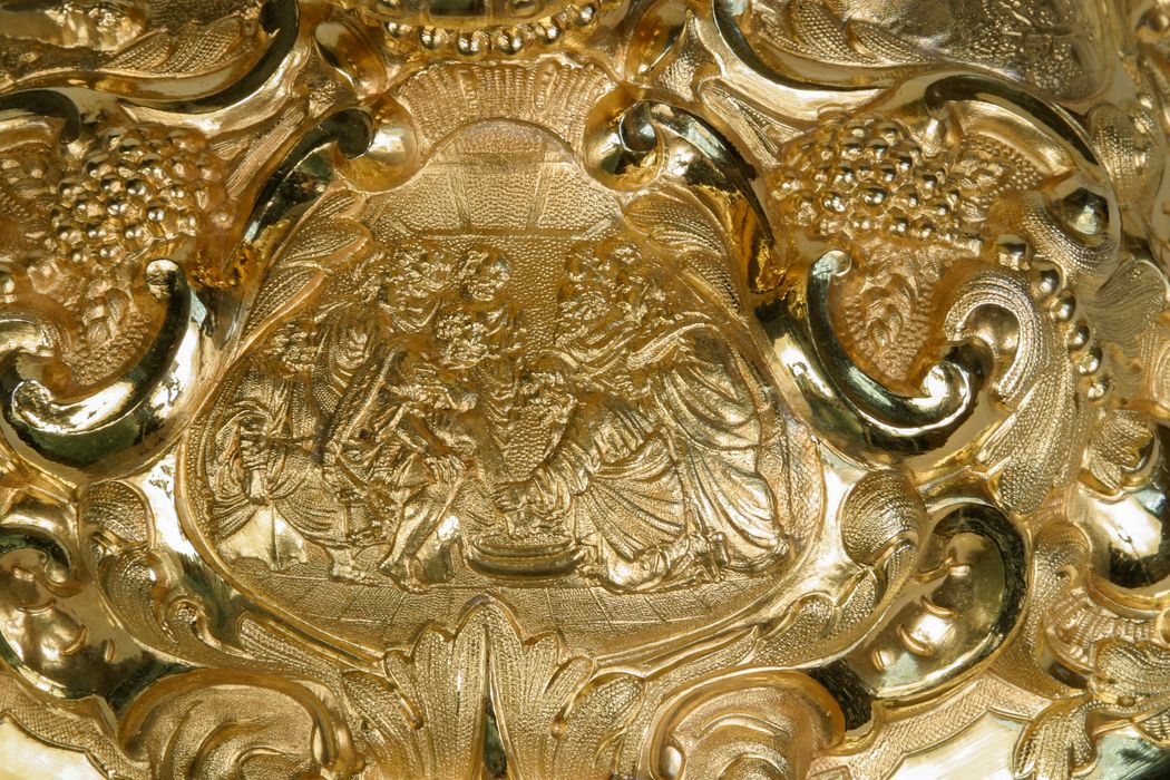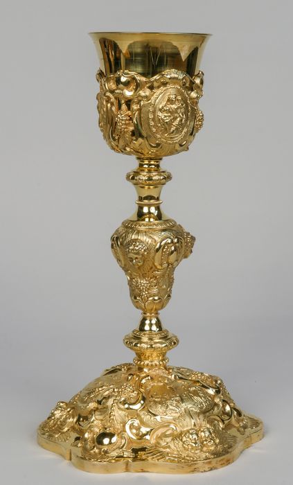 Calice et patène réalisées par l'orfèvre parisien Eugène Trioullier, au milieu du 19e siècle.