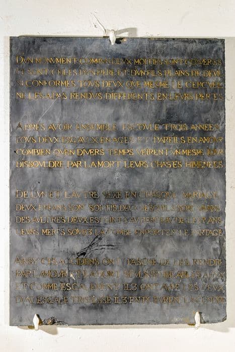 Plaque avec inscription en vers français.