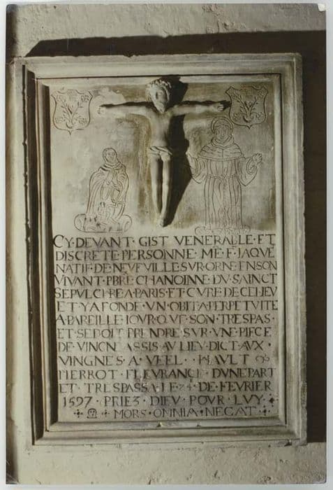 plaque commémorative de fondation des messes et plaque funéraire de François Jaquet, curé de Véel