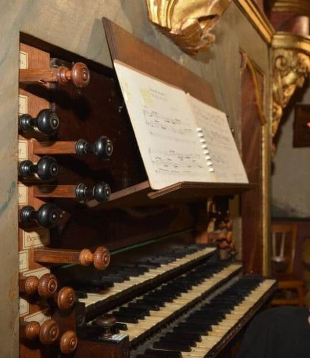 Orgue composé de deux claviers manuels de 53 notes.