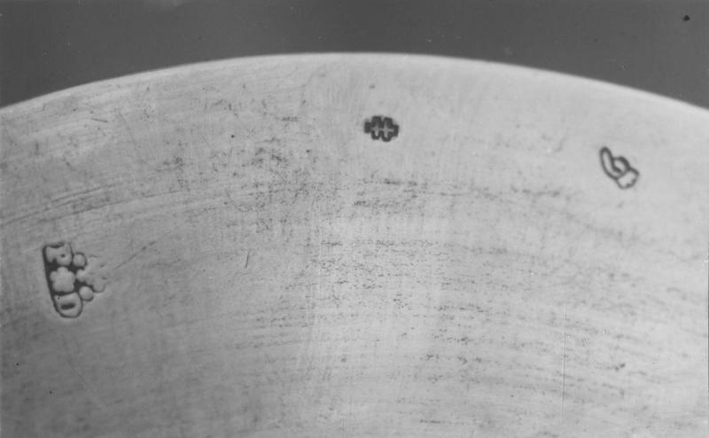 Poinçon : M B inscrits dans un rectangle (sous la base). Poinçon (illisible) : animal (?) (sous la base).
