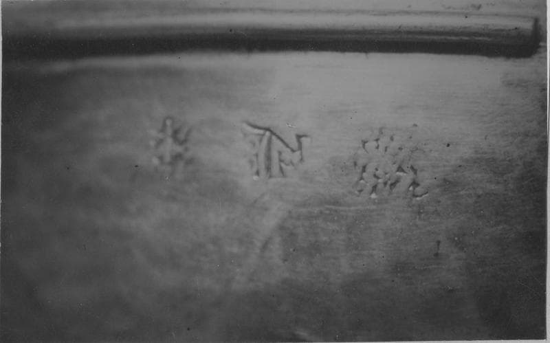 inscription ; date ; poinçon ; poinçon (partiellement illisible)