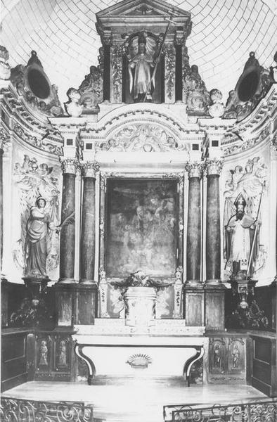 POP | Plateforme ouverte du patrimoineautel, retable, 3 statues, tableau (maître-autel) : sainte Barbe, saint Eloi, saint Cornély, la Déploration du Christ