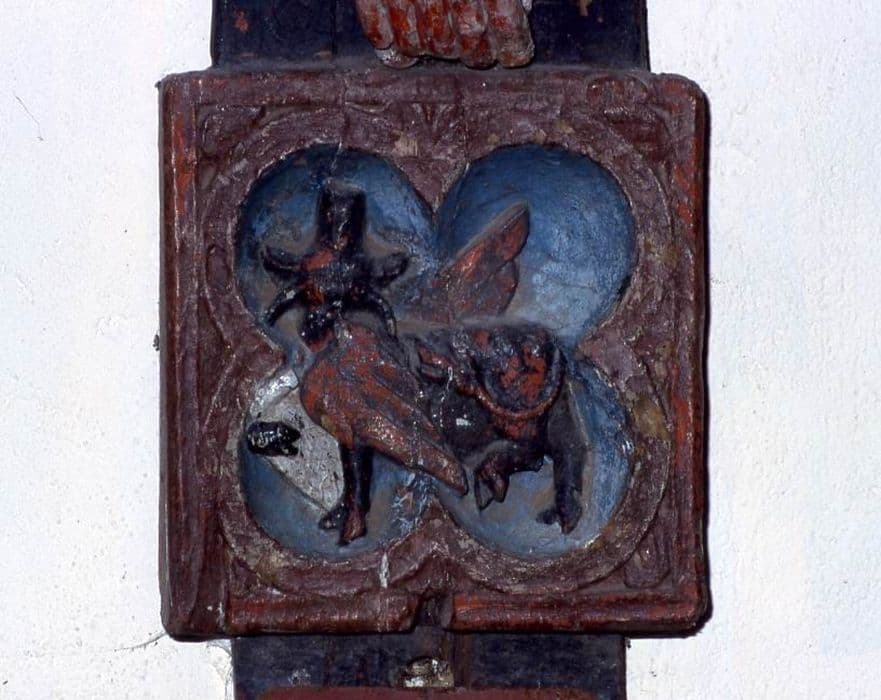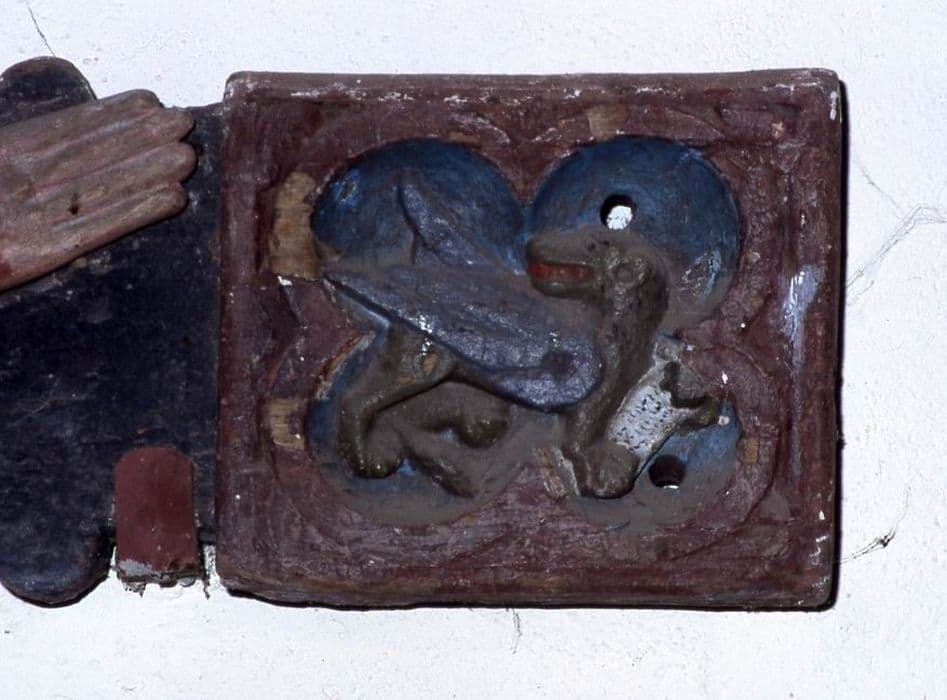 Les symboles des évangélistes sont figurés à chaque extrémité de la croix.