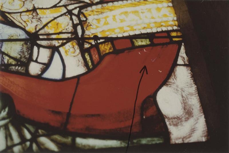 Marque d'auteur : En l'an 1552 fut faict cette vitre et fut louvrier Tessa (?) le flamant (fenêtre de la Passion, à droite). Date : 1552 (fenêtre de la Passion, à droite).