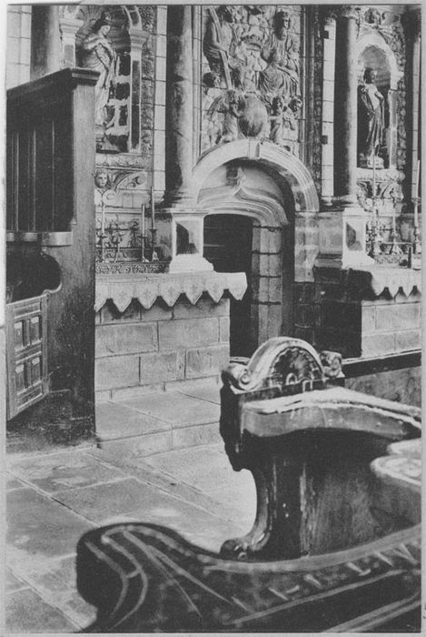 Au 17e siècle, le retable fermait l'accès entre la nef et le choeur des chanoines. En 1923, le collège des chanoines n'existant plus, le retable fut abattu et transporté à gauche du choeur.