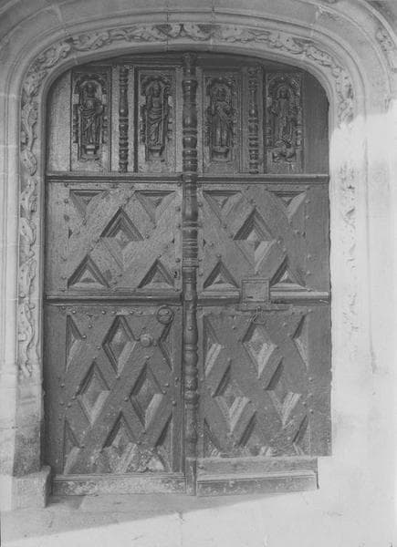 Vantaux. Porte cintre bas à deux vantaux comportant trois étages de panneaux.