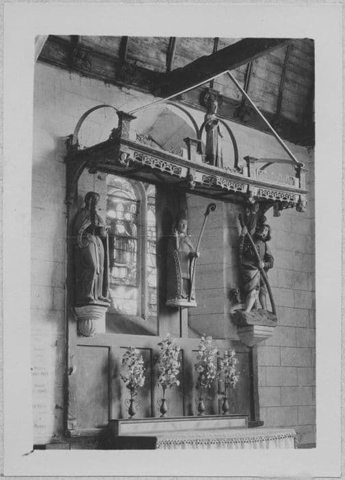 ensemble (retable à baldaquin, groupe sculpté, 2 statues)