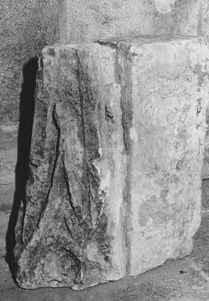 Trente-neuf éléments de l'ancien portail occidental : pilastres, chapiteaux, corniches et pinacles, pierre sculptée, fin du 15e siècle, début du 16e siècle.