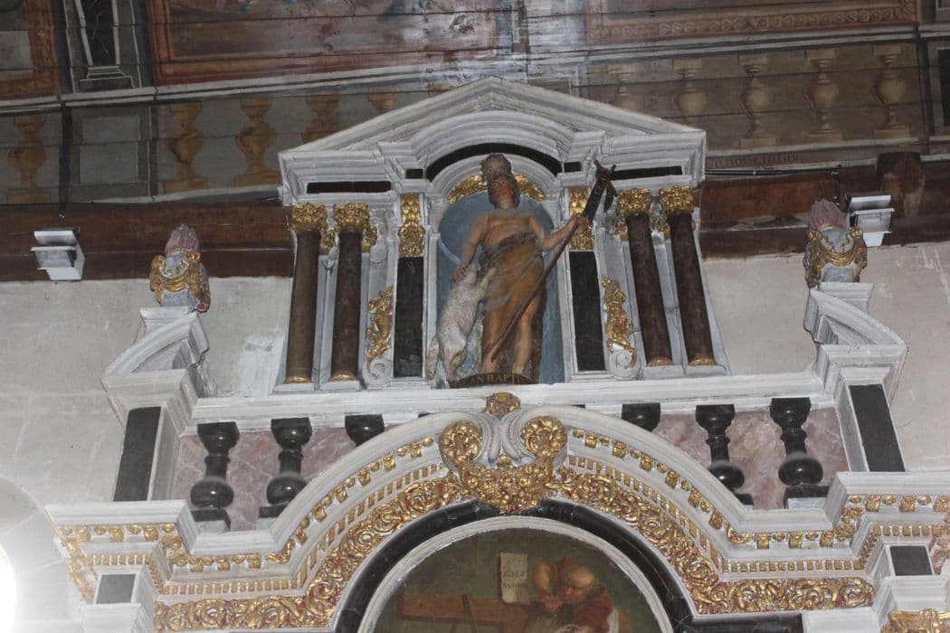 POP | Plateforme ouverte du patrimoineautel, retable, 3 statues : saint Jean-Baptiste, saint François-d'Assise, sainte Catherine de Sienne, tableau : Descente de Croix (autel secondaire de saint Jean-Baptiste)