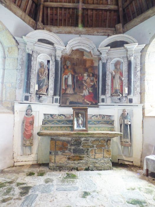 POP | Plateforme ouverte du patrimoineretable du choeur, deux statues : Saint Molvan et Notre-Dame de Bon Secours et tableau : Saint bénissant la foule