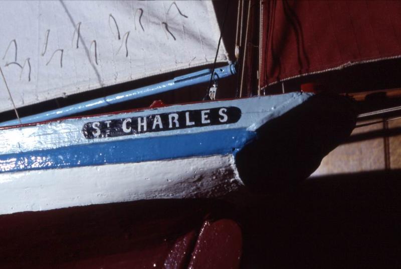 Inscription (à bâbord et tribord avant) : GX 1963 ; inscription (à bâbord et tribord arrière) : St-Charles.