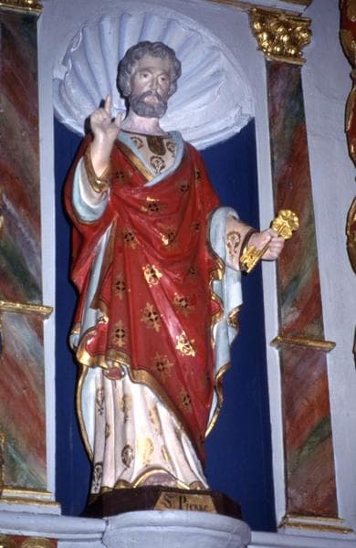 retable du maître-autel et trois statues : Trinité, Saint Pierre et Saint Paul