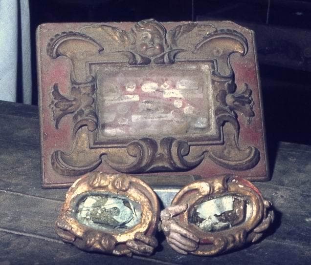 Reliquaire sculpté d'une tête d'angelot dans la partie supérieure.