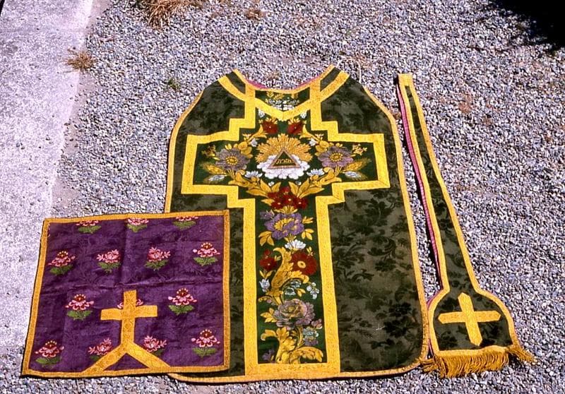 ornement liturgique : chasuble et étole de clerc