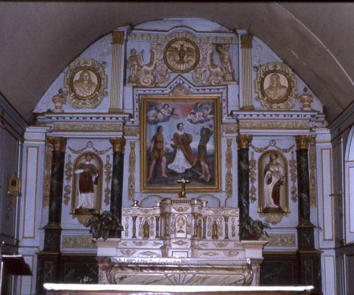 POP | Plateforme ouverte du patrimoineautel (maître-autel), tabernacle et retable, deux statues : Saint Etienne et Sainte Anastasie, tableau : Lapidation de saint Etienne et deux bas-reliefs (médaillons) : Louis XIV et Marie-Thérèse