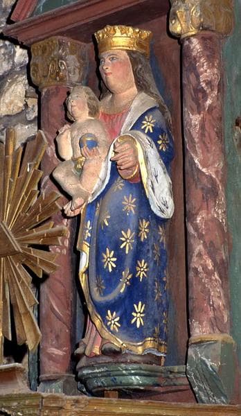 POP | Plateforme ouverte du patrimoinetabernacle et deux gradins de l'autel latéral nord avec statue : Vierge à l'Enfant et statue (statuette) : Saint abbé