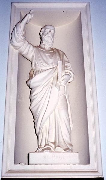 cinq statues du choeur : Saint Pierre, Saint Nicolas, Notre-Dame de Miséricorde, Saint Joseph et Saint Paul