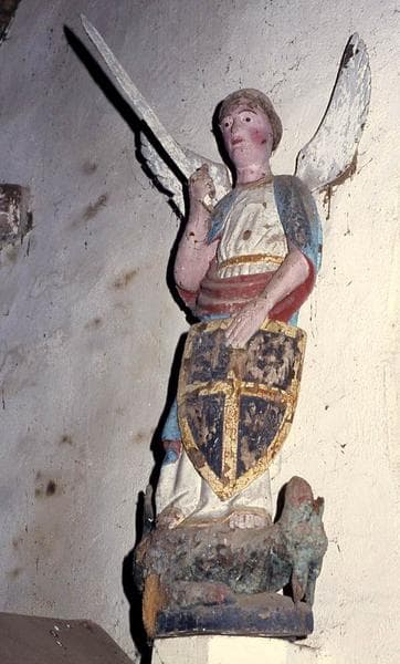 saint Michel terrassant le démon : armure, épée, bouclier