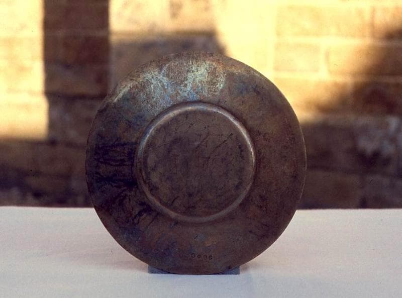Patène ornée du monogramme du Christ encadré d'une croix latine et d'un coeur, le tout dans une couronne d'épines.