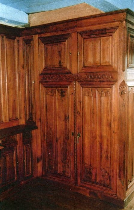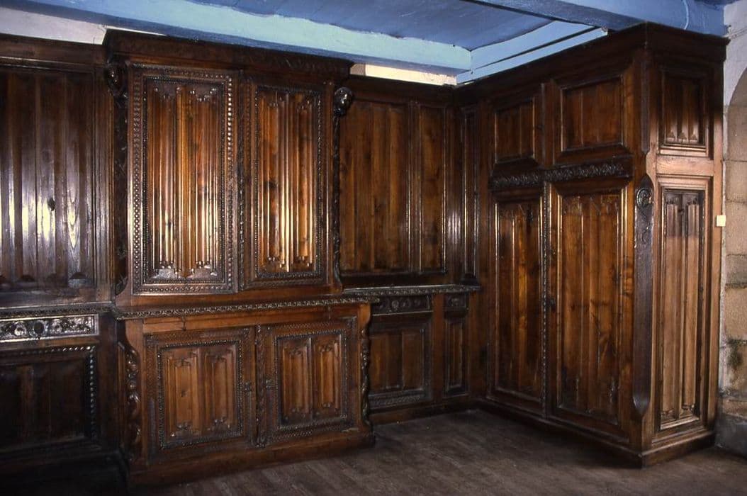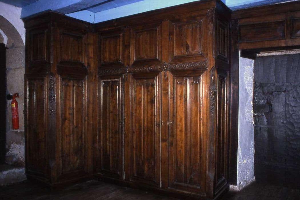 Le mobilier de la sacristie fait corps avec les lambris, sur les quatre murs.