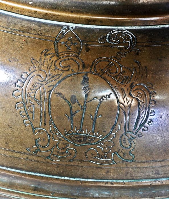 Le pupitre est à deux faces. L'ensemble repose sur un pied mouluré en marbre rouge, tracé selon le plan d'un octogone.