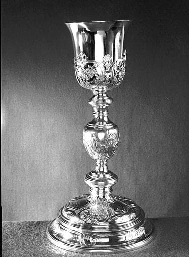 chapelle du cardinal de Montmorency-Laval (calice, plateau, aiguière, clochette, 2 burettes, plateau à burettes, bougeoir)