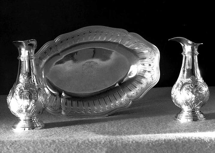 POP | Plateforme ouverte du patrimoinechapelle du cardinal de Montmorency-Laval (calice, plateau, aiguière, clochette, 2 burettes, plateau à burettes, bougeoir)