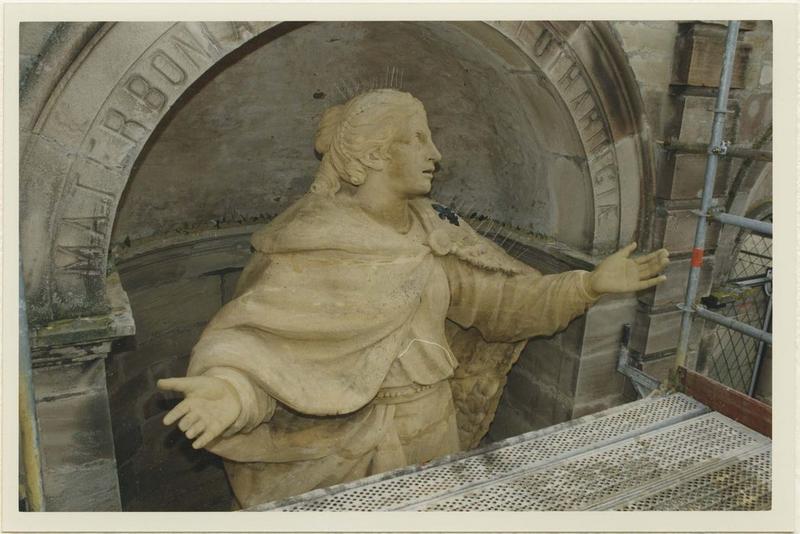 Statue restaurée en 1996 par l'atelier Rosenstein ; la main droite et les doigts manquants de la main gauche ont alors été replacés.
