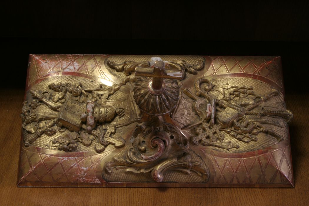 La partie inférieure est endommagée et la dorure est très usée (en 2009).