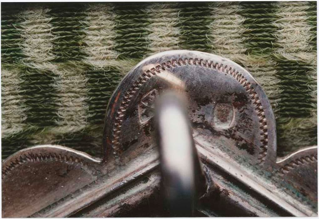 Ce tass a la forme d'une maison à fronton triangulaire. Une baguette moulurée délimite les deux parties et un découpage festonné et ciselé décore le pourtour. Le fronton est décoré au centre par le triangle divin rayonnant. Le carré est orné des tables de la Loi, gravées avec une bordure de feuilles stylisées. Trois clochettes sont suspendues aux angles du triangle par des anneaux soudés.