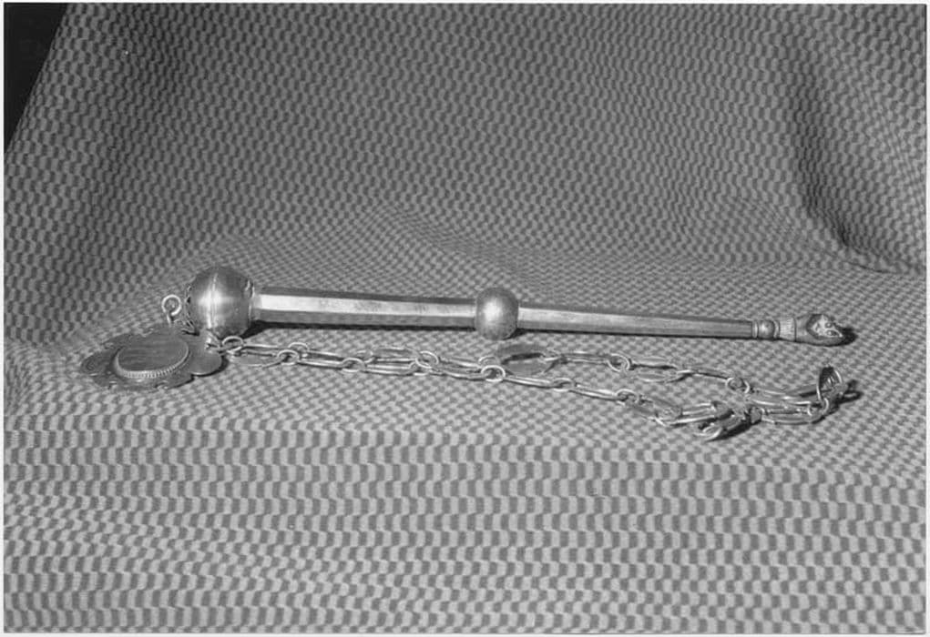 Ce yad de forme hexagonale est composé de deux parties limitées par des sphères de grandeur croissante. Celle opposée à la main de lecture est repercée par des triangles formant une couronne. La chaînette est fixée à un anneau qui porte aussi un médaillon aux bords chantournés. L'inscription est gravée dans un ovale orné d'un rang de perles.