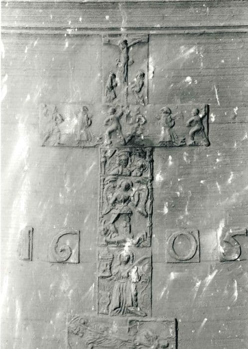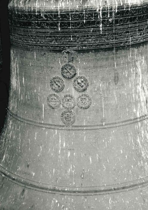 Les anses sont ornées de têtes humaines moustachues et barbues, coiffées d'une sorte de bonnet. En ce qui concerne le décor, la cloche et séparée en deux partie par une bande et deux paires de filets au milieu de la robe. Dans la partie haute se trouve du côté Est un groupe de huit blasons dont celui de la ville de Metz et du côté Ouest un groupe de cinq autres blasons dont les armes de France. Dans cette même moitié supérieure se voit encore différents décors religieux : Saint Michel terrassant le dragon, le Christ en croix entouré de la Vierge Marie et de saint Jean, les bustes de saint Pierre et saint Paul dans des médaillons, une représentation de la Vierge à l'Enfant, deux personnages nus (représenté deux fois) et enfin une représentation de trois personnages sous un arbre, scène qui pourrait être inspirée de l'histoire de Suzanne dans le Livre de Daniel de l'Ancien Testament. Dans la partie basse de la robe, du côté Est se trouve une grande croix sur un podium de quatre degrés. Cette croix est recouverte de rinceaux. De l'autre côté, une nouvelle croix sur un podium de trois degrés. Cette croix et les grés sur lesquels elle s'élève, sont faits par la juxtaposition de petits bas-reliefs rectangulaires dont certains se répètent plusieurs fois et d'autres sont posés verticalement. On peut y voir une crucifixion, le martyre de saint Etienne (patron de la cathédrale et de la ville Metz), la Vierge à l'Enfant, saint Michel terrassant un dragon et sainte Barbe (patronne du ys Messin), un évêque, saint Paul, un personnage déshabillé et saint Joseph. Le bas de la cloche est décoré par une série de filets.£