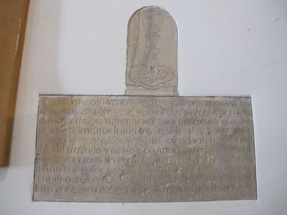 plaque funéraire de François Manquat, premier doyen de l'église de Dornes