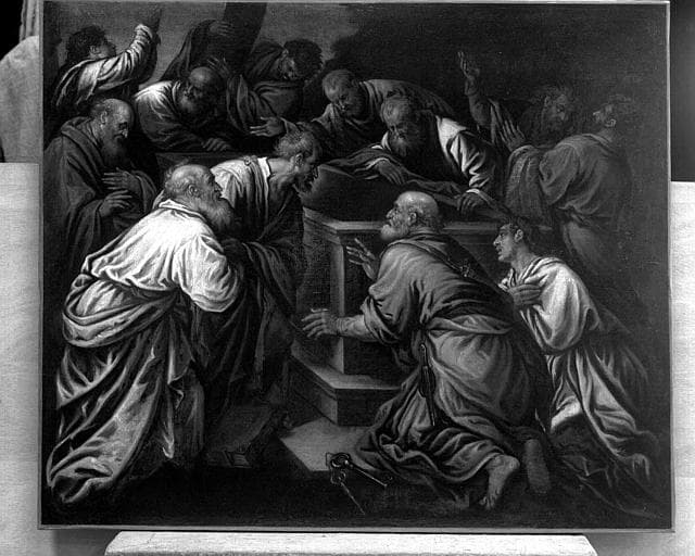 tableau, cadre : les Apôtres auprès du tombeau vide de la Vierge