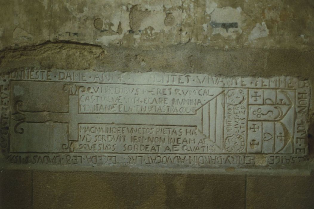 dalle funéraire d'Anne Dumontet, femme de maître Henri Bardin, avocat